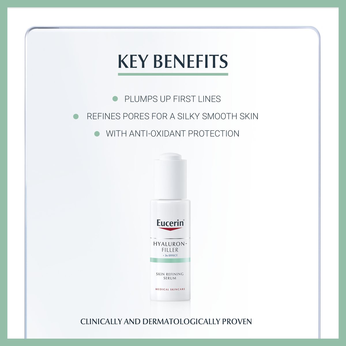 Eucerin Hyaluron-Filler Skin Refining Serum is formulated to tackle first signs of aging by reducing fine lines, plumping up skin and refining pores.