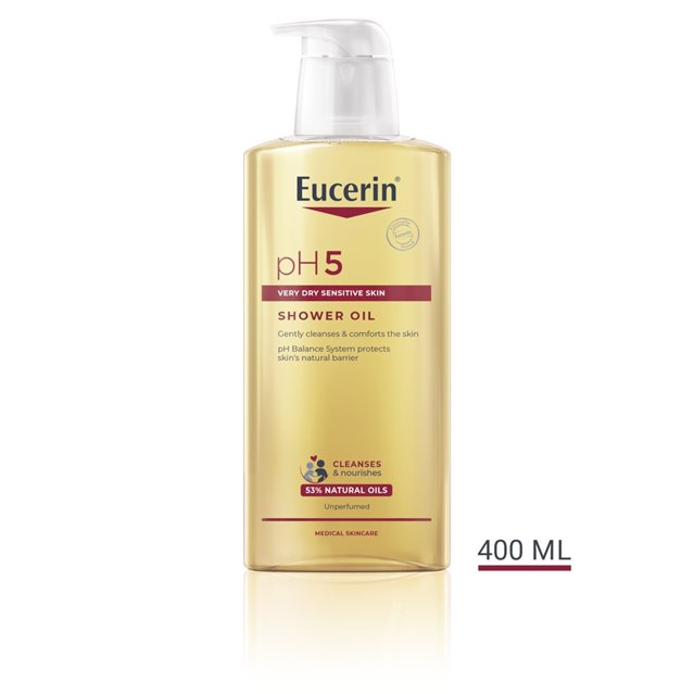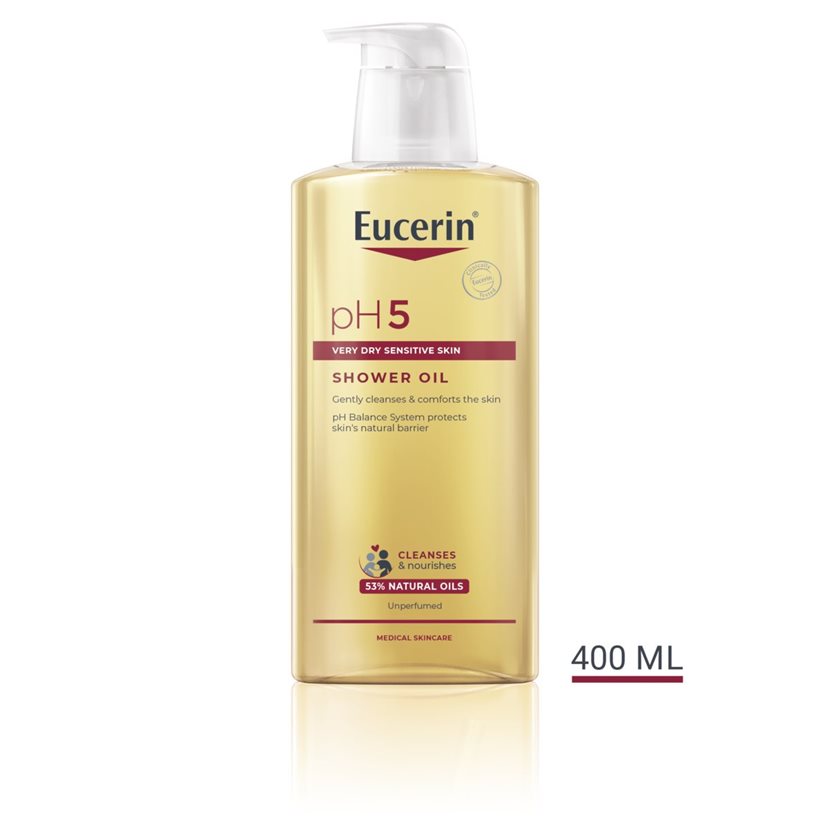 Sensitive skin needs gentle cleansing to resist daily stressors. Protect & comfort your skin with Eucerin pH5 Shower Oil and experience a new skin well-being. pH5 Shower oil with Caring Oils and Dexpanthenol cleanses gently and and respects the skin’s microbiome.. The skin is gently cleansed, and its pH level is stabilized . Skin feels smooth and soft and is protected from drying out, regaining its comfort.