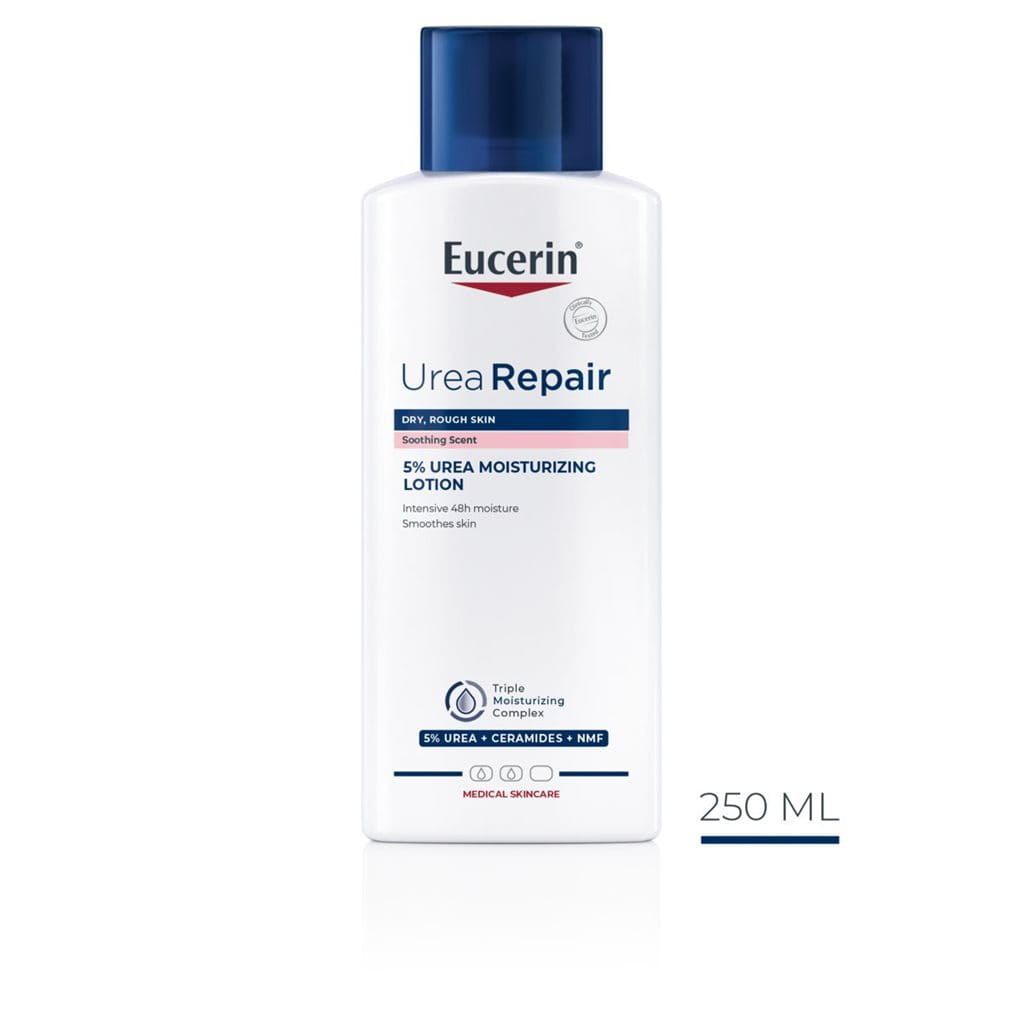 The lightly scented product in the Eucerin UreaRepair range – Eucerin UreaRepair 5% Urea Moisturizing Lotion (soothing scent) – combines proven effectiveness with a delicate, soothing and skin-friendly scent that is free from perfumes known to cause allergies and is proven to be well tolerated by dry, sensitive skin. So now you can enjoy the best of both worlds without compromise.